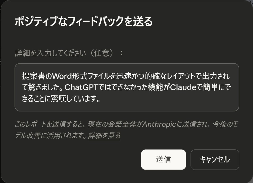 実務でWordファイルを生成してもらい、そのままクライアントへの提案書として使えた場面がありました。